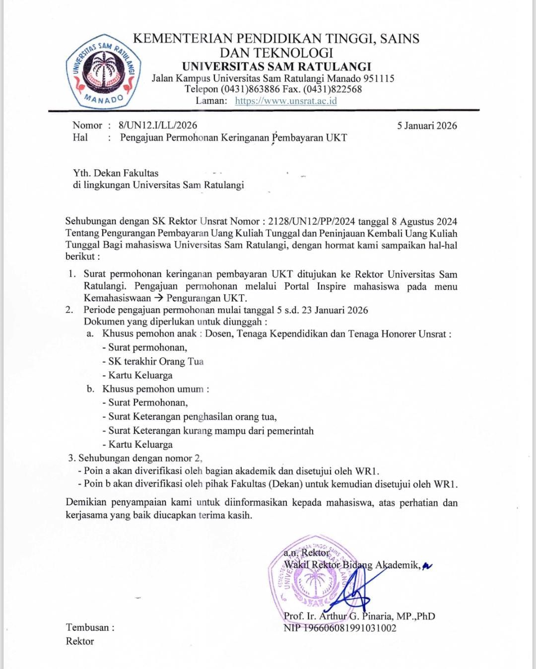 Berlokasi di Kampus Bahu, Jl. Kampus UNSRAT, Kelurahan Bahu, Kecamatan Malalayang, Kota Manado, Sulawesi Utara.